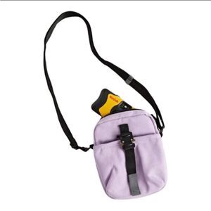 Everyday essential pouch with zip pockets and a buckle closure. Fitted with an adjustable webbing shoulder strap.