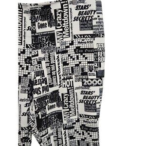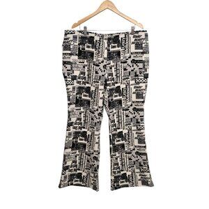 UO Urban Outfitters Womens XXL Newspaper Print Flared Leg Pants Stretch Pull On