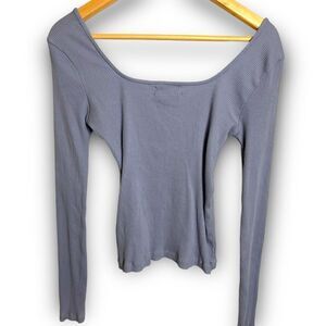 UO Urban Outfitters Square Neck Ribbed Ling Sleeve Crop Top L