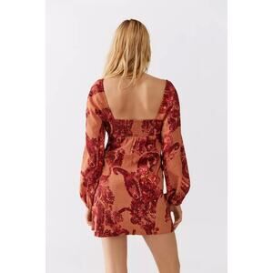 UO Vivienne Printed Long Sleeve Mini Dress Small