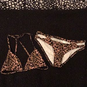 Cheetah print bottom. Bikini style fit with cute front cut outs. Will sell the set discounted if you’re interested!
