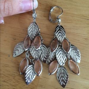 Silver leaf chandelier earrings from Urban Outfitters. Has dusty pink crystals and rhinestones at the top. Never worn!