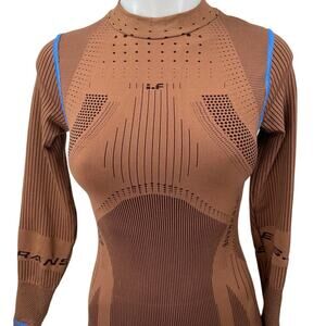 Urban Outfitters iets Frans Brown Seamless Long Sleeve Ribbed Striped Bodycon Sweater Dress XS