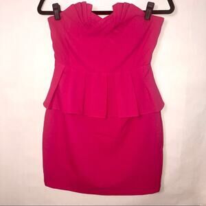 Gorgeous Peplum fuchsia/pink dress. This dress is strapless with a back zipper closure and a sweetheart neckline.