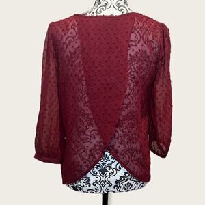 UO pins & needles swiss dot 3/4 sleeve sheer split back blouse maroon size M