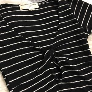 Urban Outfitters T-Shirt with Black and White strips and a tie front keyhole