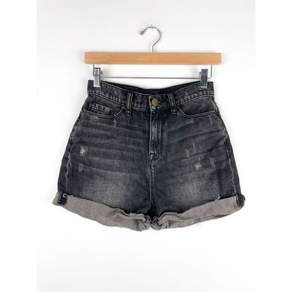 UO BDG Mom High Rise Shorts Black Distressed Cuffed Size 24 W