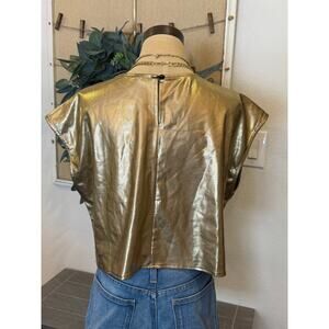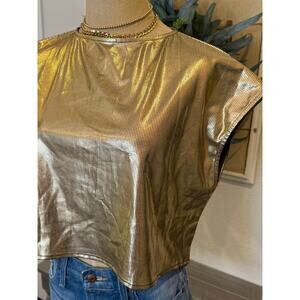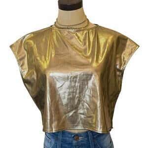 UOOZEE Gold Metallic Disco Cropped Top Shirt Party Costume size M