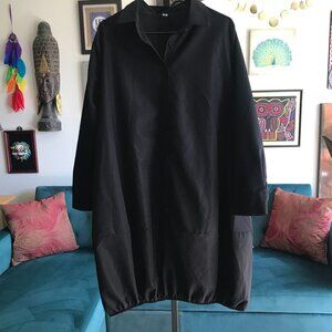 UOOZEE size M Oversized Black Lagenlook Tunic Shirt Dress Pockets Artsy