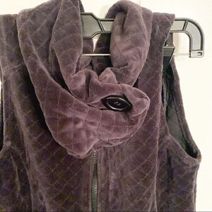 Zips up with over size cow neck that buttons