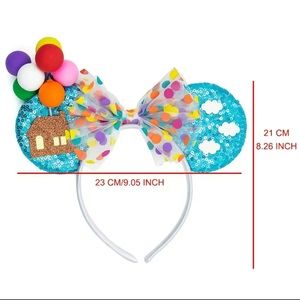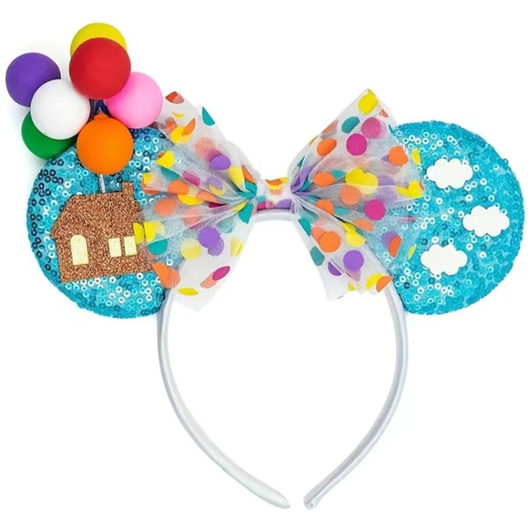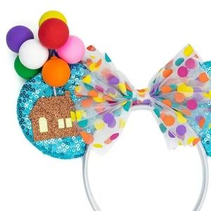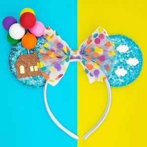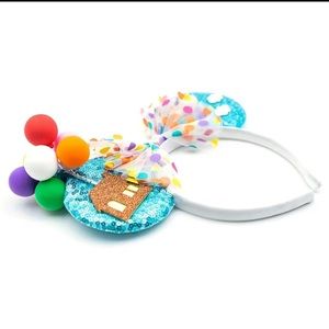 UP Mouse Ears for sale! These Mouse Ears are so so cool! They are light blue sequined Ears, and they feature a polka dot bow, with a house, balloons and clouds on the front. They are light in weight, they are new, they have never been worn, and are from my boutique! Such awesome Mouse Ears to add to your collection!