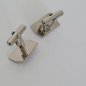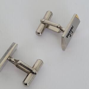 U.P. Renoma Paris Gold Silver Tone Rectangle Logo Cufflinks Designer Geometric