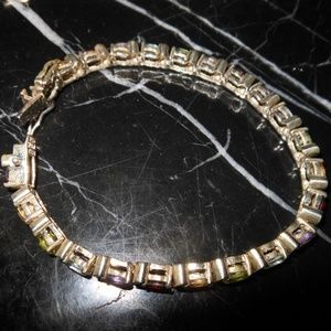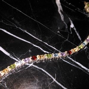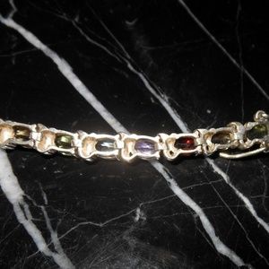 Hi, I am selling a, Guaranteed Authentic UP THAILAND 925 Sterling Silver Oval Multi Stone Gem Chain Ladies Bracelet 8", In Excellent Condition. This is a beautiful authentic multi stone bracelet with all colors of the rainbow, made in thailand, sterling silver 925, and gold plated.