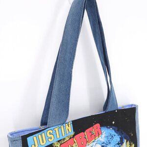 UPCYCLED HANDMADE Justin Bieber Anyone in Space Denim Tote Bag