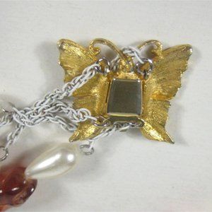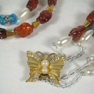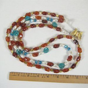 UPCYCLED Imitation Pearl Beaded Necklace 34 in Goldtone Butterfly Clasp Strand