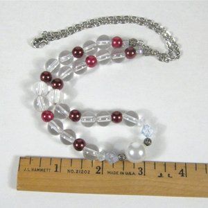 UPCYCLED Plastic Glass Beaded Necklace 24 inch Strand Jewelry Silvertone Chain