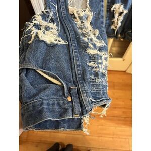 These are UPCYCLED Wrangler Wide Leg Jeans in size 26 for women. The jeans are in a distressed style, featuring a unique and edgy look the legs have a waist added to them to widen them very unique and cool