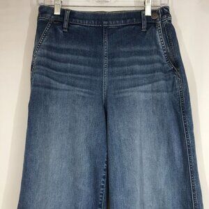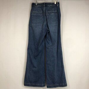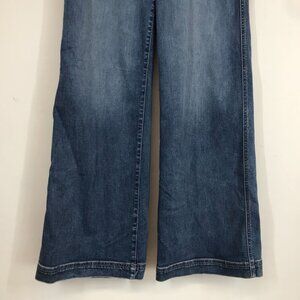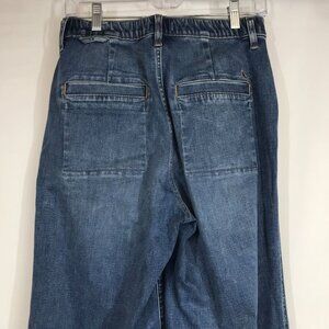 UPWEST - WOMEN'S MEDIUM - BLUE ELASTIC SNAP WAIST COTTON BLEND WIDE LEG JEANS