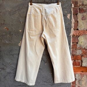 High-rise wide-leg crop sailor pant with button fly, front pockets, side seam, and waistband.