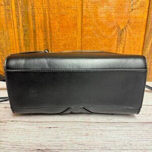 Exterior details - smooth faux leather with two front zipper pockets and one back zipper pocket, silver-tone hardware