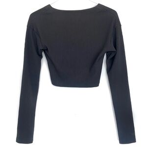 URBAN OUTFITTERS 90s Ribbed Charcoal Twisted Front Knot Crop Top w/ long sleeves