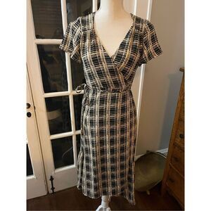 URBAN OUTFITTERS - Academia Grid Print Plaid True Wrap Dress size M