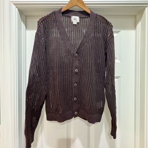 URBAN OUTFITTERS BDG Beach Cardigan Dark Brown Sz Medium NWOT V-neck Open Knit