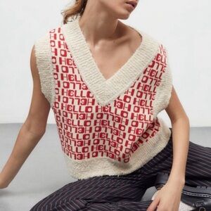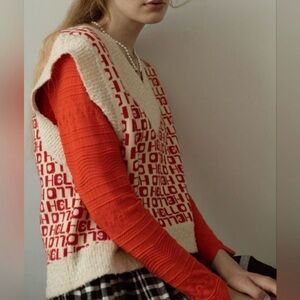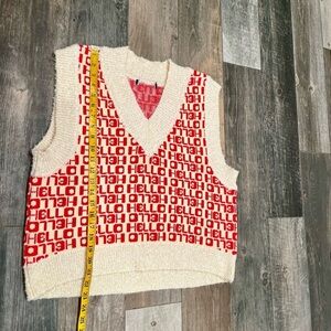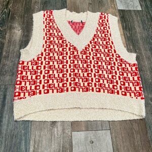 URBAN OUTFITTERS BDG Jordie “HELLO” Jacquard Sweater Vest RED Multi Size L