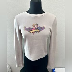 Embrace vintage grunge vibes with this Urban Outfitters BDG thermal top. Crafted in a soft waffle knit, this long sleeve crew neck features a bold graphic eagle with banner print at the chest for a nostalgic 90s edge.