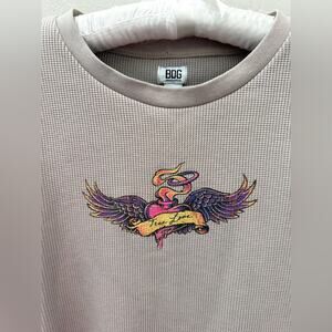 URBAN OUTFITTERS BDG | Waffle Knit Graphic Thermal Long Sleeve Top | Large