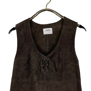 URBAN OUTFITTERS BROWN LEATHER SLEEVELESS LACE BUST RETRO 70'S MINI SHIFT DRESS
