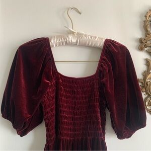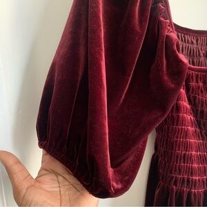 URBAN OUTFITTERS Velvet Smock Romper Burgundy XS