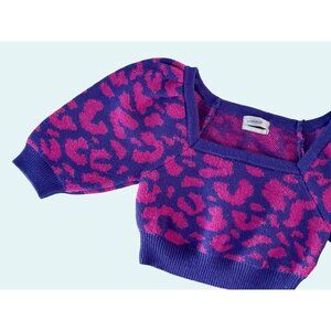 Gorgeous cropped sweater by Urban Outfitters. New without tags. Pullover style. Square neckline. Soft knit construction. Dramatic short puff sleeves. Rayon, polyester, nylon. Size medium.