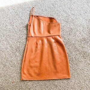 🦋 URBAN OUTFITTERS Brown Geri Snake Print One-Shoulder Strap Mini Dress Large