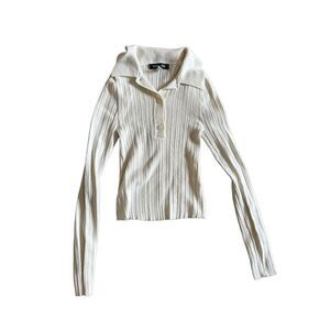 URBAN OUTFITTERS CREAM RIB KNIT POLO CROP SWEATER sz S