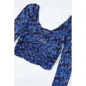 URBAN OUTFITTERS CROP TOP MEDIUM JULIANA CREPE CUTOUT CROPPED BLUE STAR PRINT