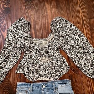 Urban Outfitters EUC long sleeve crop top cheetah print, keyhole cutout