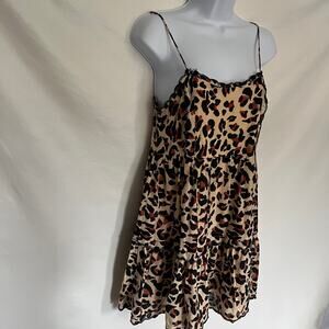 Beige Urban Outfitters Cheetah Mini Tiered Skirt Dress with Spaghetti Straps