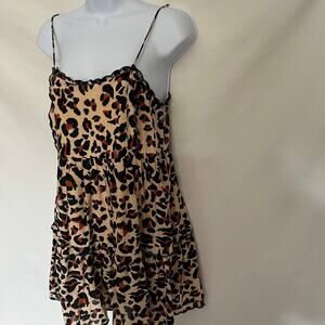 URBAN OUTFITTERS Cheetah Mini Dress Size XS Beige Spaghetti Strap Cosplay Tiered