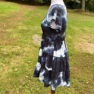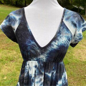 URBAN OUTFITTERS DRESS MINI BLACK BLUE WHITE TIE DYE V-NECK CAP SLEEVE Size S