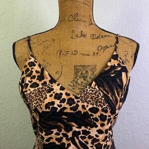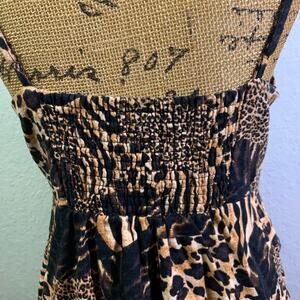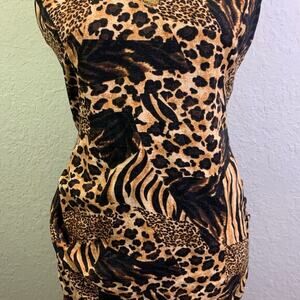 URBAN OUTFITTERS Dress Mini Mixed Animal Smocked Back Spaghetti Strap Bodycon