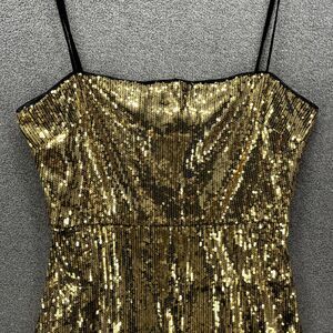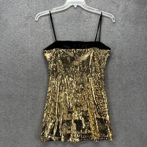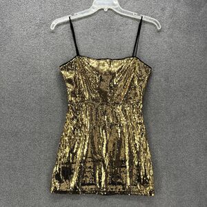 URBAN OUTFITTERS Dress womens Medium Gold Sequin Mini Spaghetti Straps Zipper