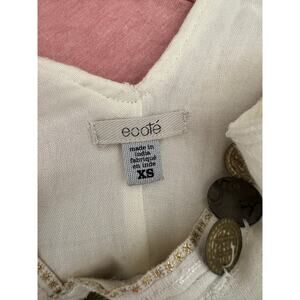 Features a hanging gold metallic coin detail on the front, adjustable spaghetti straps, swing asymmetrical handkerchief hemline in a shift like silhouette. Fabricated in a light and airy embroidered fabric. Made in india. Color is Ivory/Cream. Size is Women's XS.