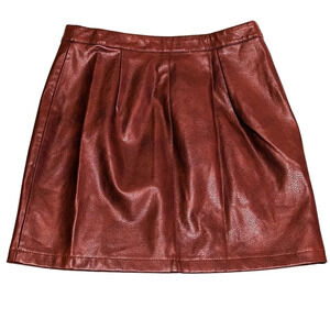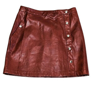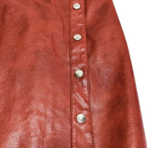 Super cute and versatile. Vegan leather skirt with working buttons down the side in a terracotta burnt rust color