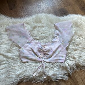 URBAN OUTFITTERS Flutter Sleeve Ruched Crop Top