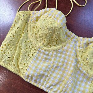 URBAN OUTFITTERS Gingham & Eyelet Corset Bralette Crop Top Size Medium