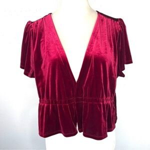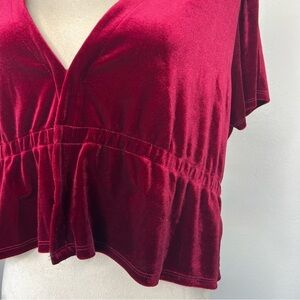 URBAN OUTFITTERS Goldie Velvet Cropped Top Burgundy Short Sleeve Size Medium