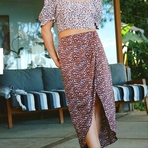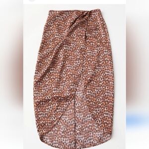 URBAN OUTFITTERS Leopard print Satin kelly Tulip wrap midi skirt. Size XS