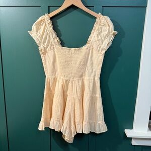 URBAN OUTFITTERS Lily Cream Tie-Front Playsuit Romper Cottagecore Whimsy Lace