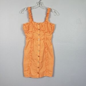 URBAN OUTFITTERS Luxe Dreams Button Front Ruffle Mini Dress Orange Sz XS